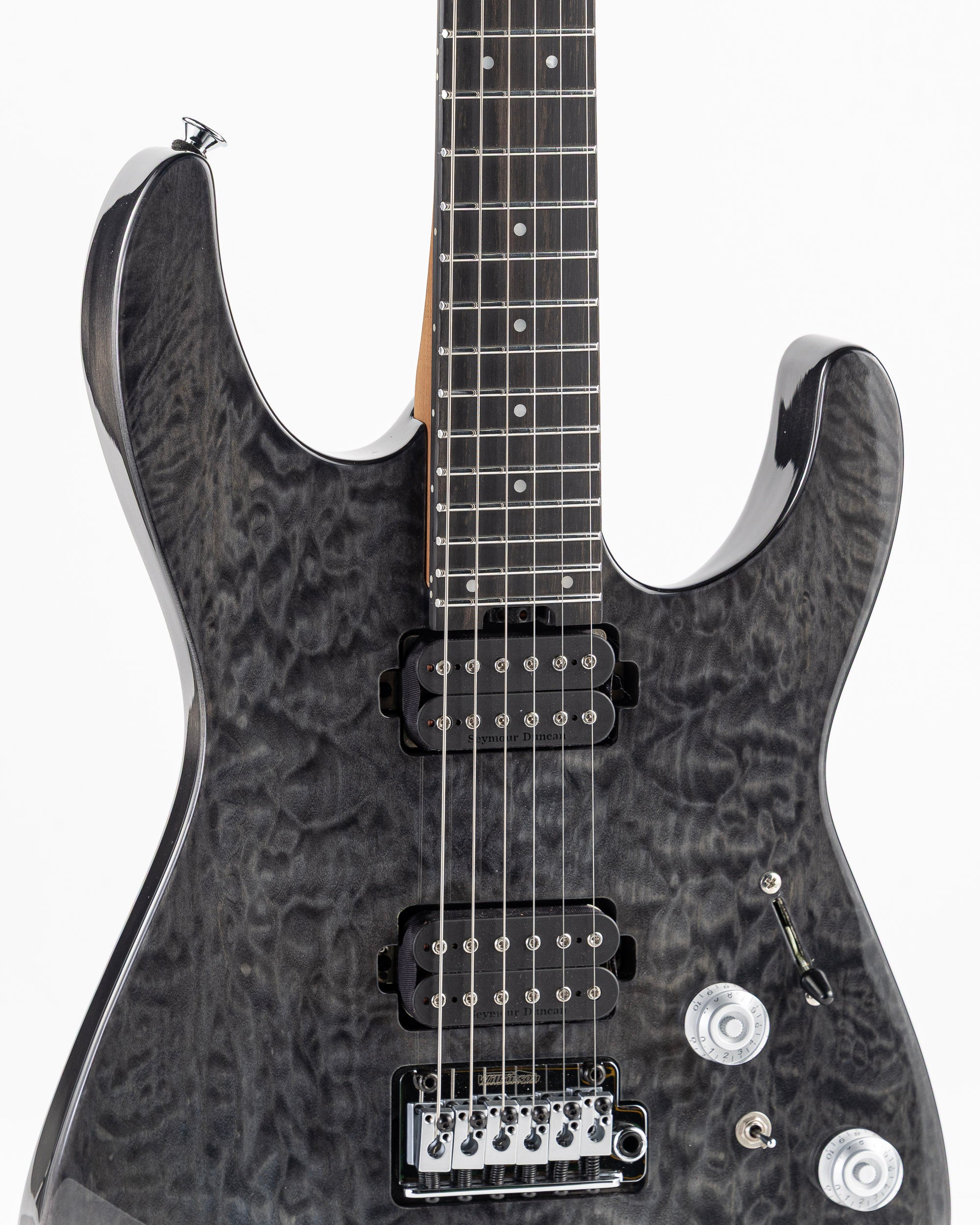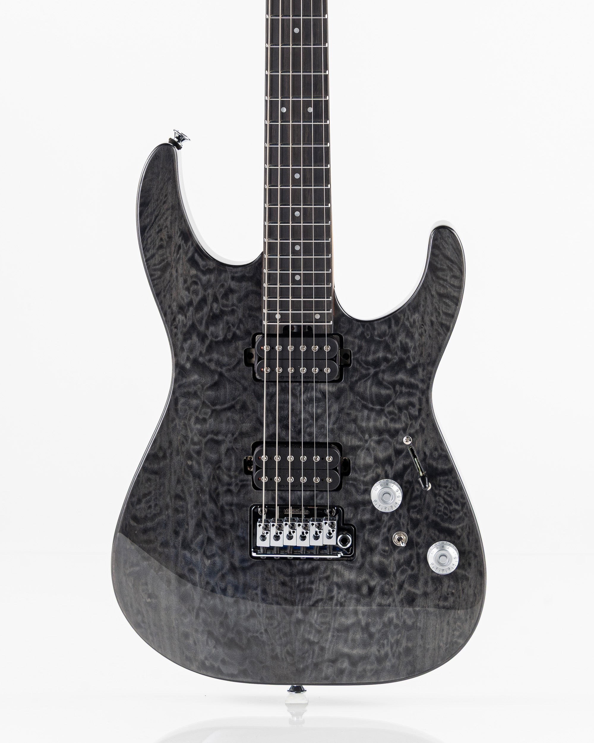 This axe features an HH pickup configuration consisting of a direct mount Seymour Duncan® Full Shred™ TB-10 bridge pickup and direct mount Seymour Duncan® Alnico Pro II™ APH-1N neck pickup. The bridge pickup radiates a crisp top-end with low-end articulation, while the neck pickup has incredible range with soaring highs and silky lows.