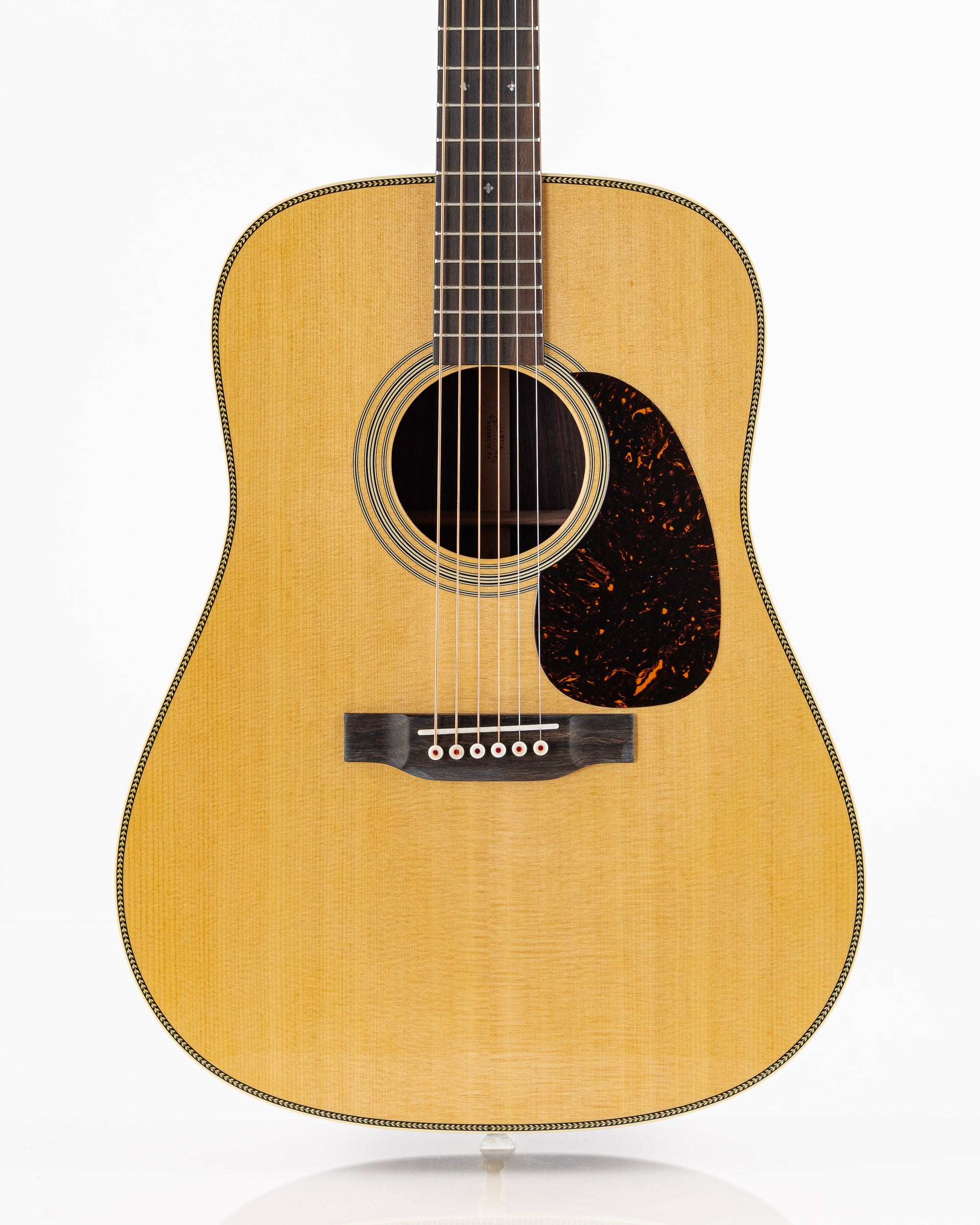 The Martin HD-28 is a legendary acoustic guitar, trusted by generations of players and played by countless icons across genres. Its Dreadnought body size and scalloped bracing delivers the bold, projective tone with strong bass, clear trebles, and rich overtones that has defined acoustic music for nearly a century. Handcrafted with a solid spruce top and solid East Indian rosewood back and sides, the HD-28 offers a resonant, balanced voice for all playing styles. Bold herringbone top inlay and an ebony fingerboard with abalone diamond and square inlays add a vintage-inspired touch. The satin neck, featuring a Golden Era (GE) Modified Low Oval profile, high-performance taper, and 25.4" scale length, ensures effortless playability. Complete with antique white binding, an ebony bridge with bone pins, and nickel open gear tuners, the HD-28 blends timeless craftsmanship with modern versatility. Available in a variety of gloss options, it’s a guitar you can trust to unleash the artist within.